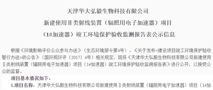 桂林華大生物科技有限公司使用電子加速器輻照項目竣工環(huán)境保護(hù)驗(yàn)收信息公示